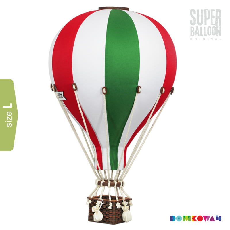 Połączenie wysokiej jakości tkanin, drewna imitującego wiklinę oraz sznurka daje efekt realnie odwzorowanego modelu prawdziwego latającego balonu na podgrzane powietrze. Bogactwo kolorów sprawia, że można dopasować tą dekorację do niemalże każdego rodzaju wnętrz. Czasza balonu wykonana z tkaniny poliestrowej i połączona z gondolą przy pomocy starannie skręconych sznurków.
