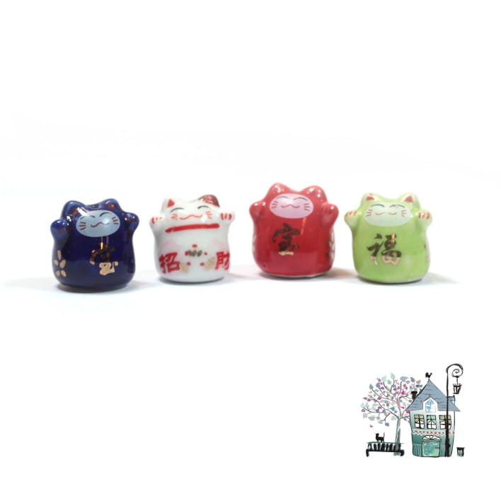 Miniaturowe, porcelanowe figurki przedstawiające chińskie kotki. Figurki w całości wykonane z porcelany w czterech kolorach. Opakowanie zawiera 4 szt