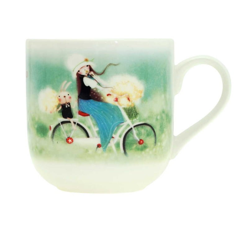 Kubek w całości wykonany z porcelany, posiada ozdobny nadruk na zewnątrz. W środku również mała ozdobna grafika. Zapakowany w kartonowe, ozdobne pudełko. Kubek można używać zarówno w mikrofalówce jak i w zmywarce.