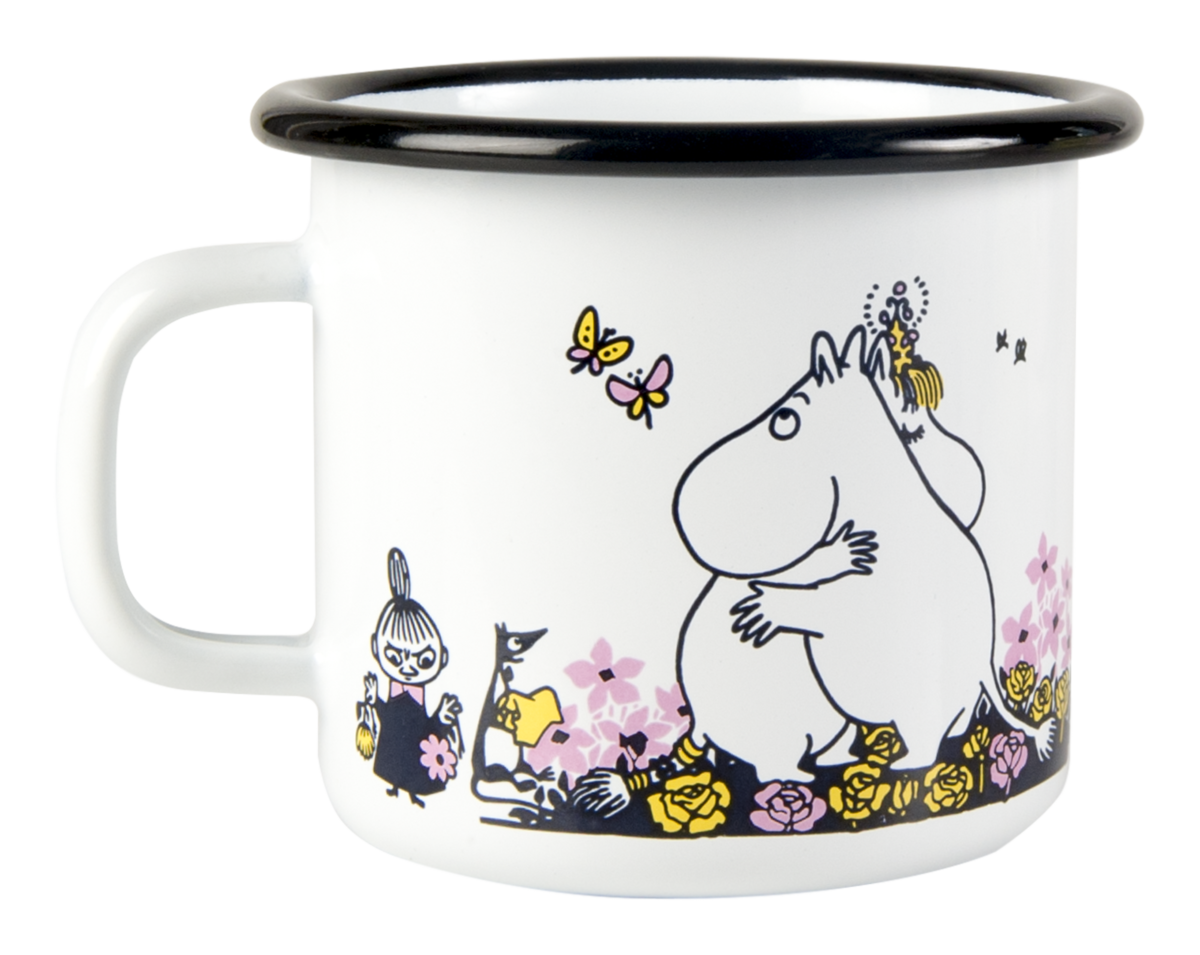 Kubek emaliowany MOOMIN "Przytulone Muminki" - wykonany z wysokiej jakości stali węglowej. Pojemność kubka to 250 ml.