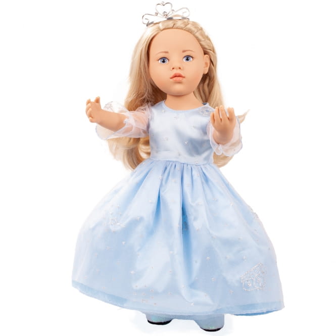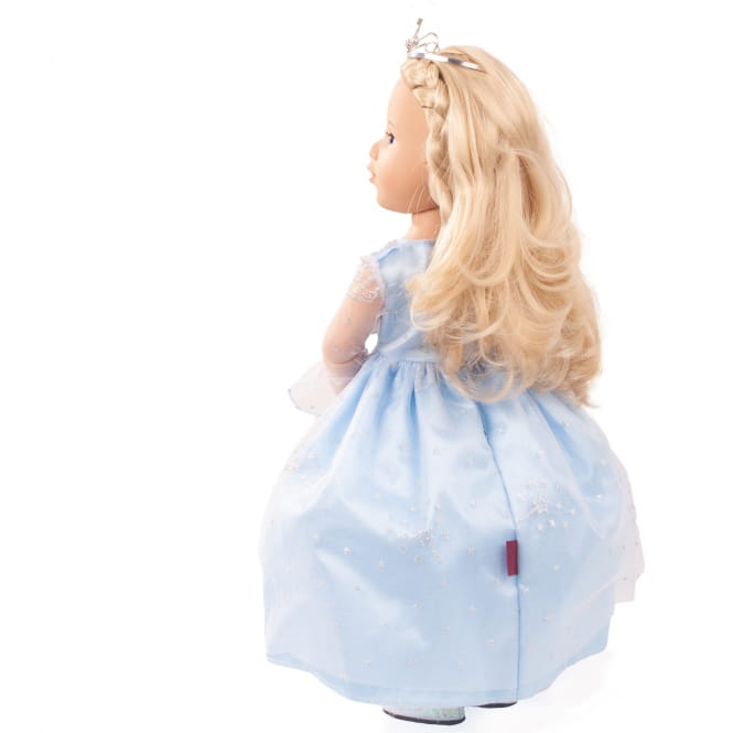 Lalka wykonana z wysokiej jakości materiałów z dużym udziałem pracy ręcznej. Lalka ma piękne długie blond włosy. Ubrana jest w przepiękną błękitną suknię, ozdobioną tiulem oraz srebrnymi gwiazdkami.