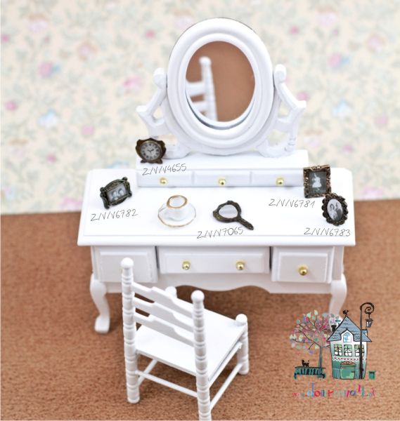 Miniaturowe lusterko z rączką w złotej, patynowanej ramce.