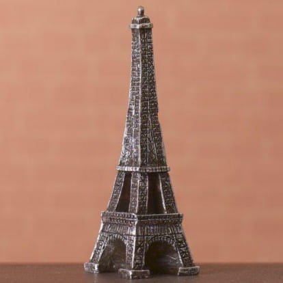 Bardzo starannie odlana z metalu miniatura słynnej Wieży Eiffle'a. Idealnie sprawdzi się jako dekoracja salonu lub gabinetu w domku dla lalek.