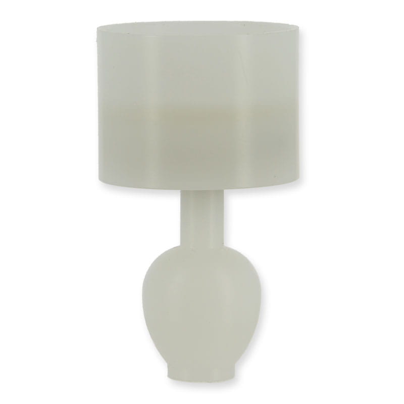 Miniaturowa lampa stołowa LED-owa z białym matowym kloszem. Korpus lampy również w kolorze białym. W górnej części pod kloszem, lampa posiada mini wyłącznik.