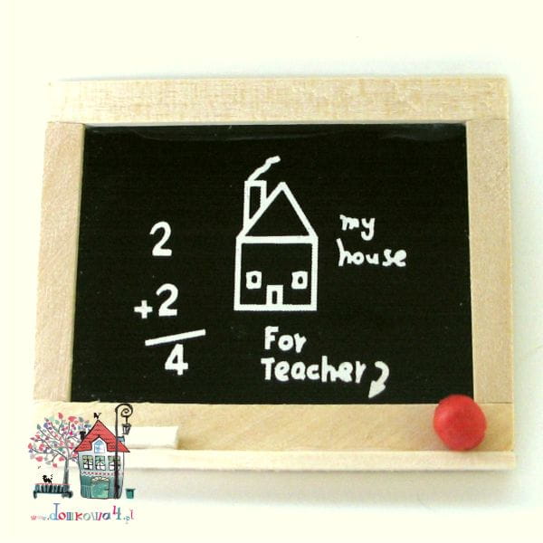 Mini zabawka - tablica do pisania kredą. Miniaturka będzie doskonałym uzupełnieniem wyposażenia pokoiku dziecka w domku dla lalek.