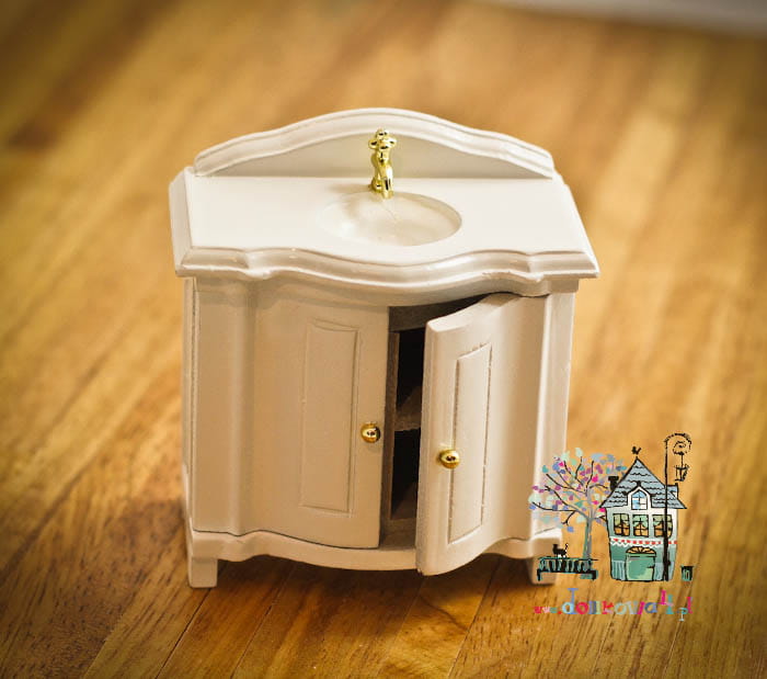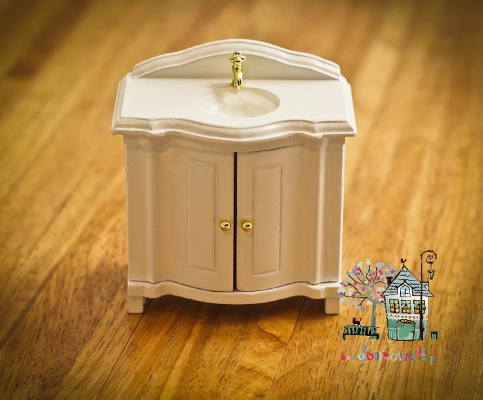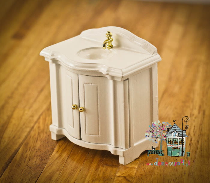Miniaturowa umywalka w białej zabudowie