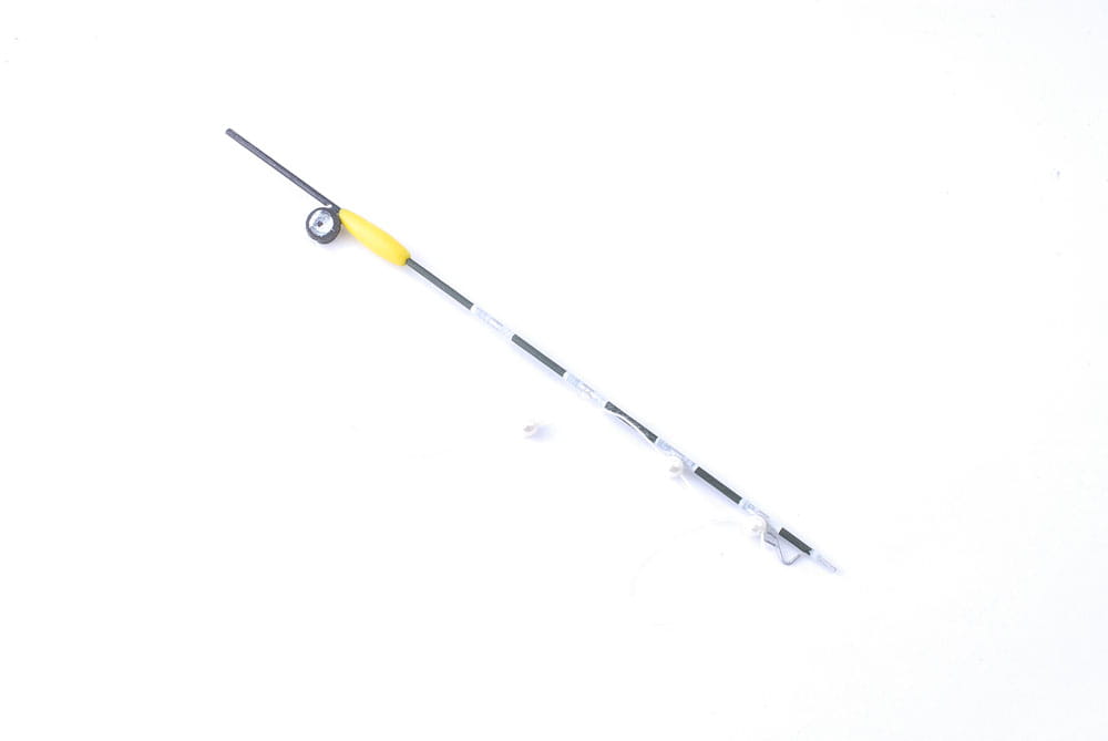 Miniaturowy wędka z kołowrotkiem. Całość wykonana z tworzywa sztucznego.