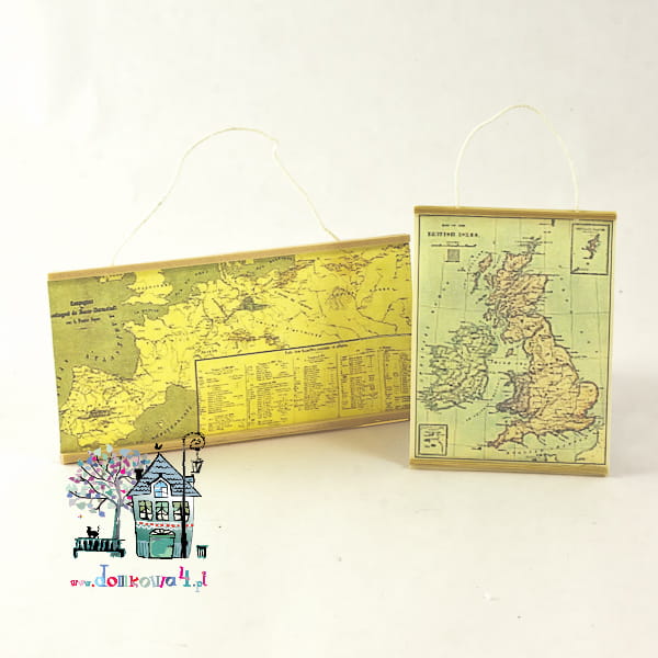 Miniaturowe plansze z mapami. W komplecie dwie oblistwowane mapy do powieszenia na ścianę.