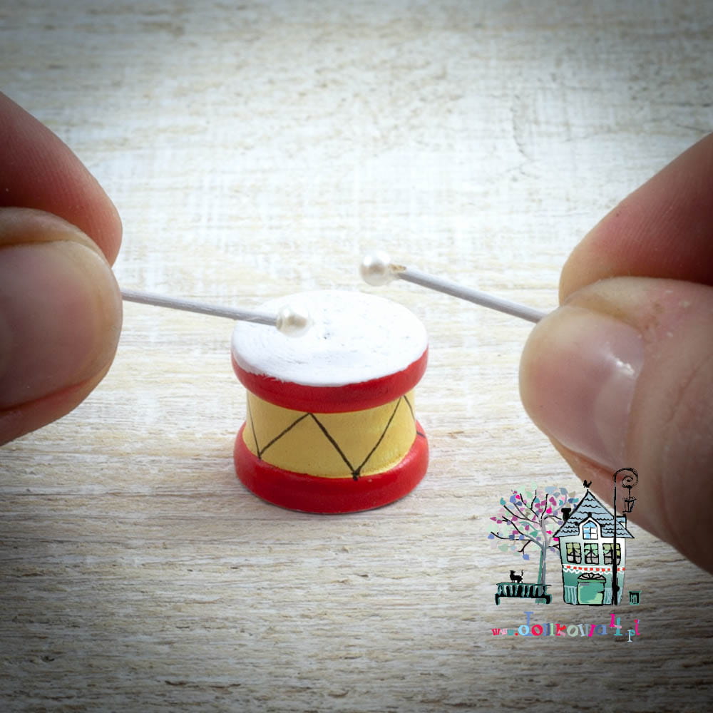Miniaturowa imitacja bębenka z pałeczkami do pokoju dziecka w domku dla lalek