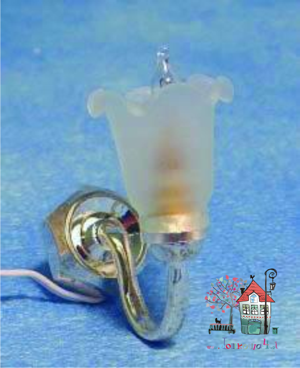 Kinkiet jednoramienny z korpusem w kolorze błyszczącego srebra i kloszami z piaskowanego szkła.