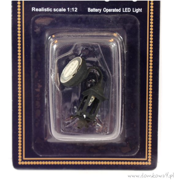 Kinkiet do oświetlenia wejścia do domku dla lalek. Lampka posiada przełącznik pozwalający na łatwe jej włączanie i wyłączanie. W komplecie z lampą znajduje się bateria typu CR1632 3V.