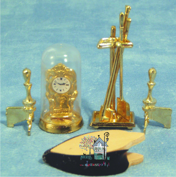 Zestaw kominkowy zawiera podstawowe elementy + zegar. Wersja miniaturowa.