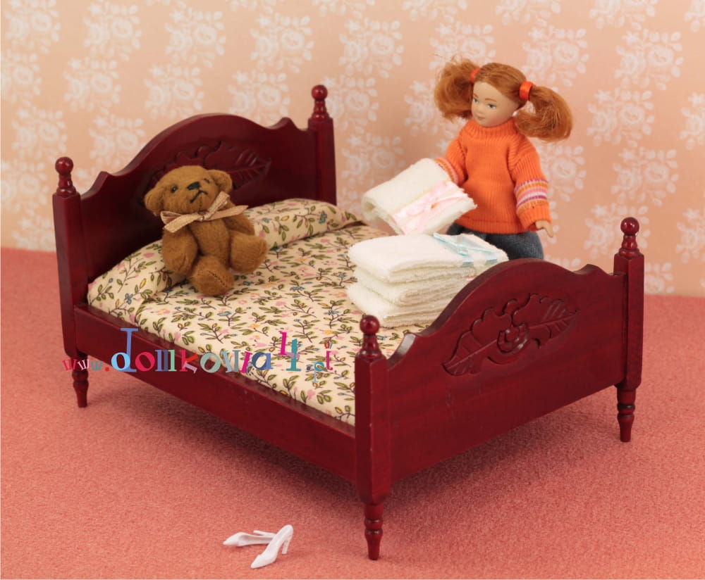 Miniaturowy pluszowy miś do pokoju dziecka w domku dla lalek.