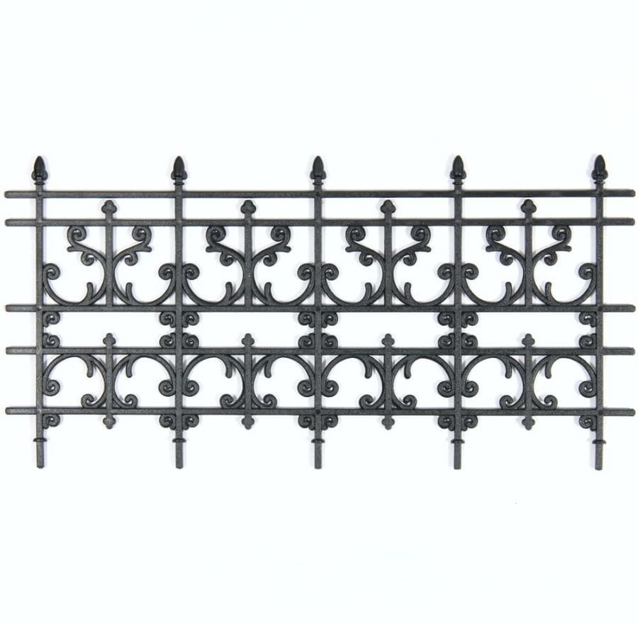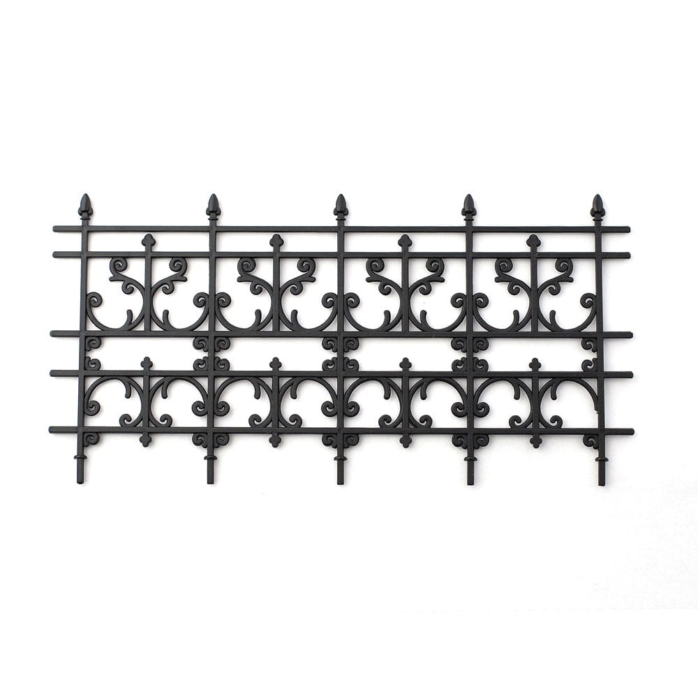 Plastikowa imitacja dekoracyjnego płotu z kutego żelaza. Ogrodzenie wykonane z wysokiej jakości tworzywa sztucznego. Unikalny i stylowy design sprawiają, że każdy ogródek lub taras w domku dla lalek będzie prezentował się nowocześnie.