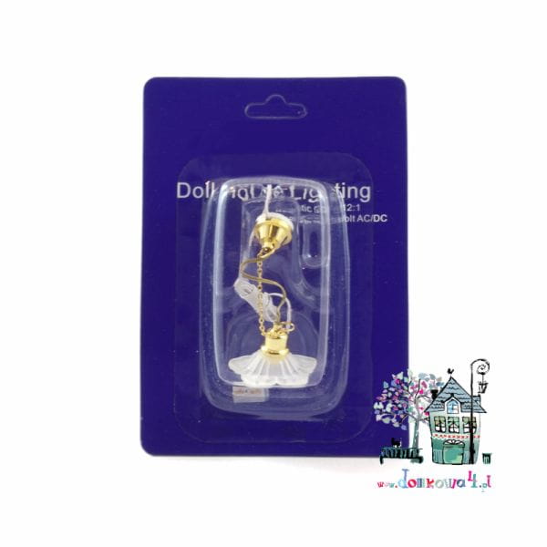 Miniaturowy żyrandol pojedynczy z kloszem skierowanym do dołu. Klosz w kolorze piaskowanego szkła w kształcie rozwiniętego kwiatka.