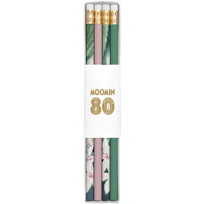 Na dwóch z ołówków widnieje fragment ilustracji z książki Tove Jannsson "Małe Trolle I Duża Powódź" , kolejne dwa są w kolorach różowym i zielonym