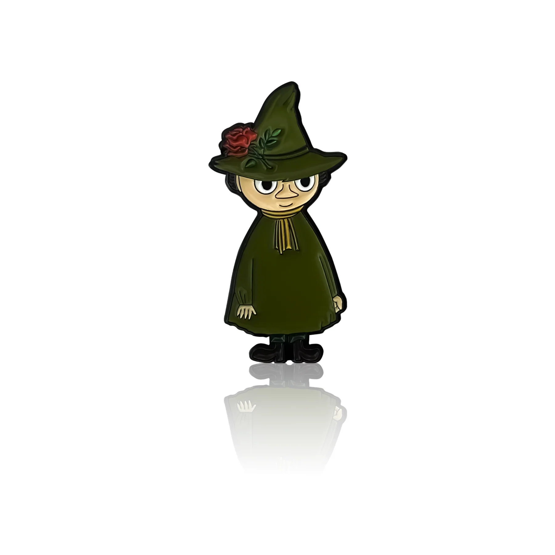 Na przypince widać postać z bajki "Dolina Muminków" autorstwa Tove Janssonn- Włóczykija.