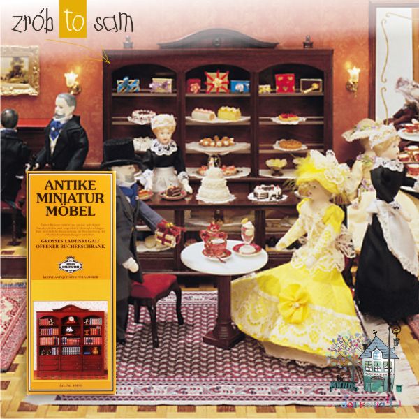 Zestaw do własnego montażu. W zestawie znajduje się komplet wyciętych elementów drewnianych potrzebnych do budowy regału. Dolna część imitująca dziewięć szuflad składa się z jednego elementu z nafrezowaną imitacją szuflad. W komlecie znajdują się również gałki do przymocowania przy frontach szuflad.