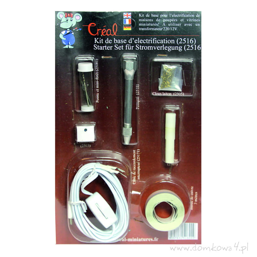 Zestaw startowy do założenia instalacji elektrycznej w domku dla lalek.